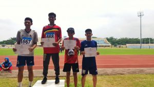 Faiq Arrafi (paling kanan) pelari tervepat ketiga POPDA 2019