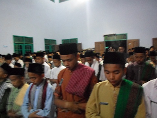 ejo/da.com- Setelah para santri datang dan mulai tinggal di Kampus pesantren Darul Amanah, karena bertepatan dengan Bulan Suci Ramadhan, Maka kegiatan para santripun banyak difokuskan pada kegiatan ibadah. Salah satunya adalah Sholat tarawih di malam hari. Pelaksanaan Sholat tarawih di Pondok Pesantren Darul Amanah sama seperti tahun lalu yaitu surat yang dibaca Imam sholat adalah dari Jus 1 ( Surat Al-Baqoroh) dan seterusnya. Yang Menjadi Imam sholat Tarawih Al-Ustadz Lukman Al- Hakim Al- Hafidz. Sholat tarawih dilaksanakan sebanyak 20 Rakaat dan 3 Rakaat Sholat Witir dengan memakai Bilalan tarawih dan witir. Bagi Para santri lama kelas 2,3,5TMI ini merupakan sholat tarawih pertama di pesantren karena hari Ahad(06/07/14) tadi mereka baru datang ke pesantren.