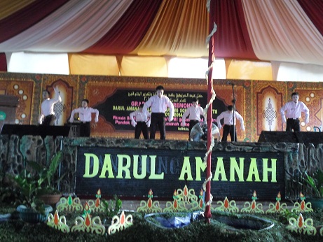 Sukorejo/da.com-Setelah wisuda kelas 6 TMI selesai, maka pada sore harinya para Santri kelas 1,2,4 dan 5 TMI mengadakan pentas Seni ( Pensi). Dalam acara pensi ini mereka menampilkan berbagai kreasi dari mulai tari-tarian, drama, pantimim, dance, Band dan lain sebagainya. Masing- masing perwakilan angkatan menampilkan berbagai kreasi tampilannya masing-masing dalam acara pensi tersebut. Pensi dilaksanakan di lapangan Darunnajah yaitu di panggung wisuda. Dimulai pada pukul 15.30 WIB sore sampai pukul 17.15 WIB.